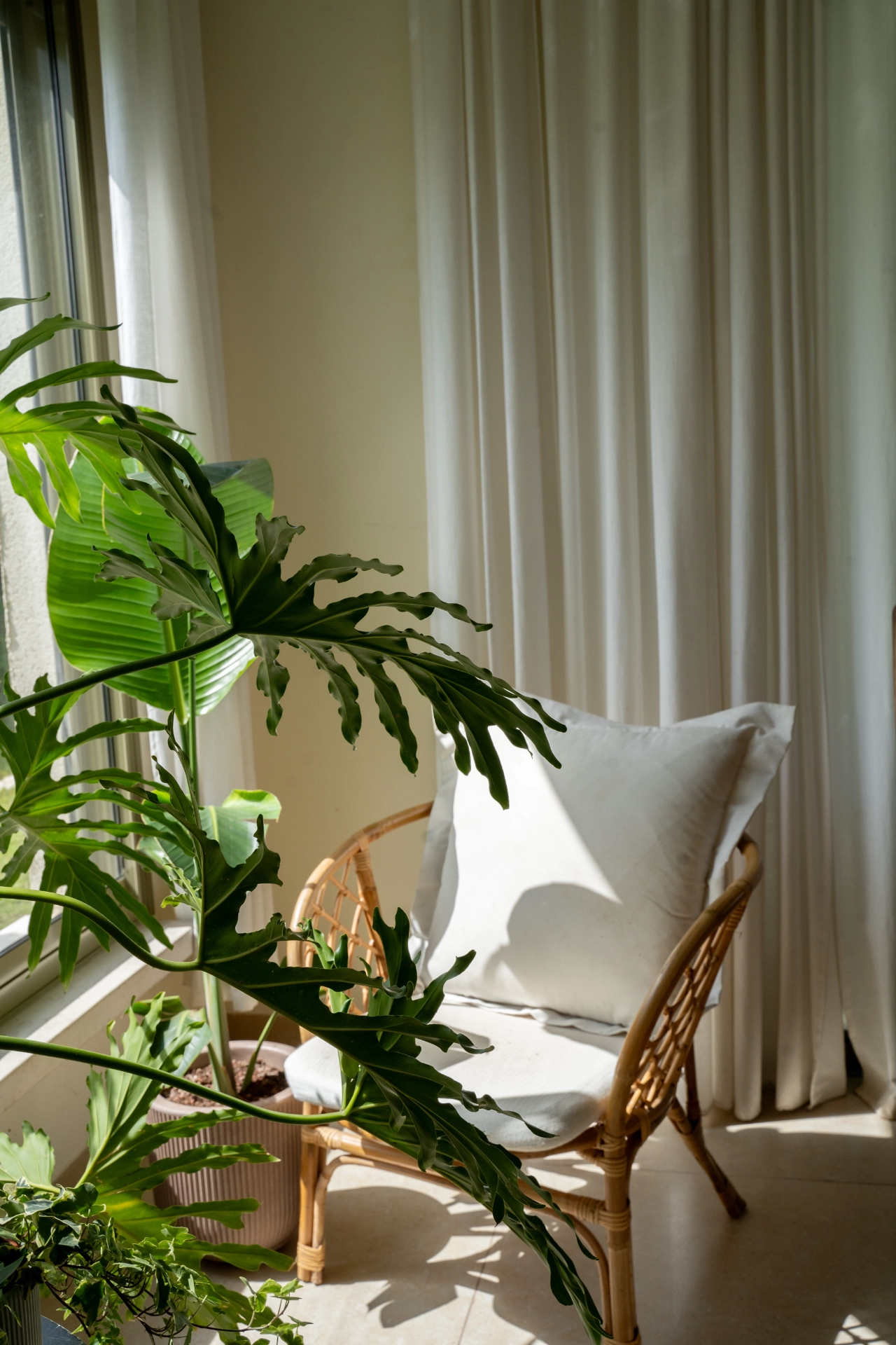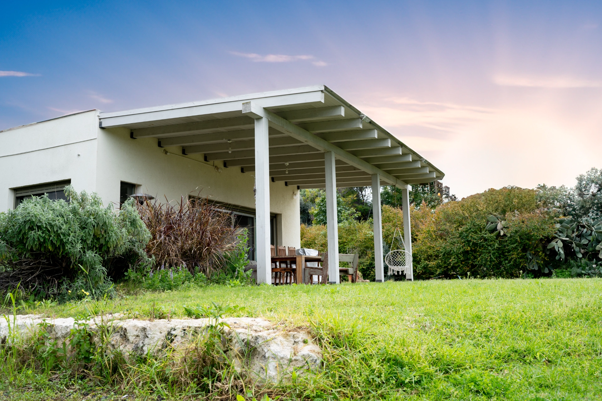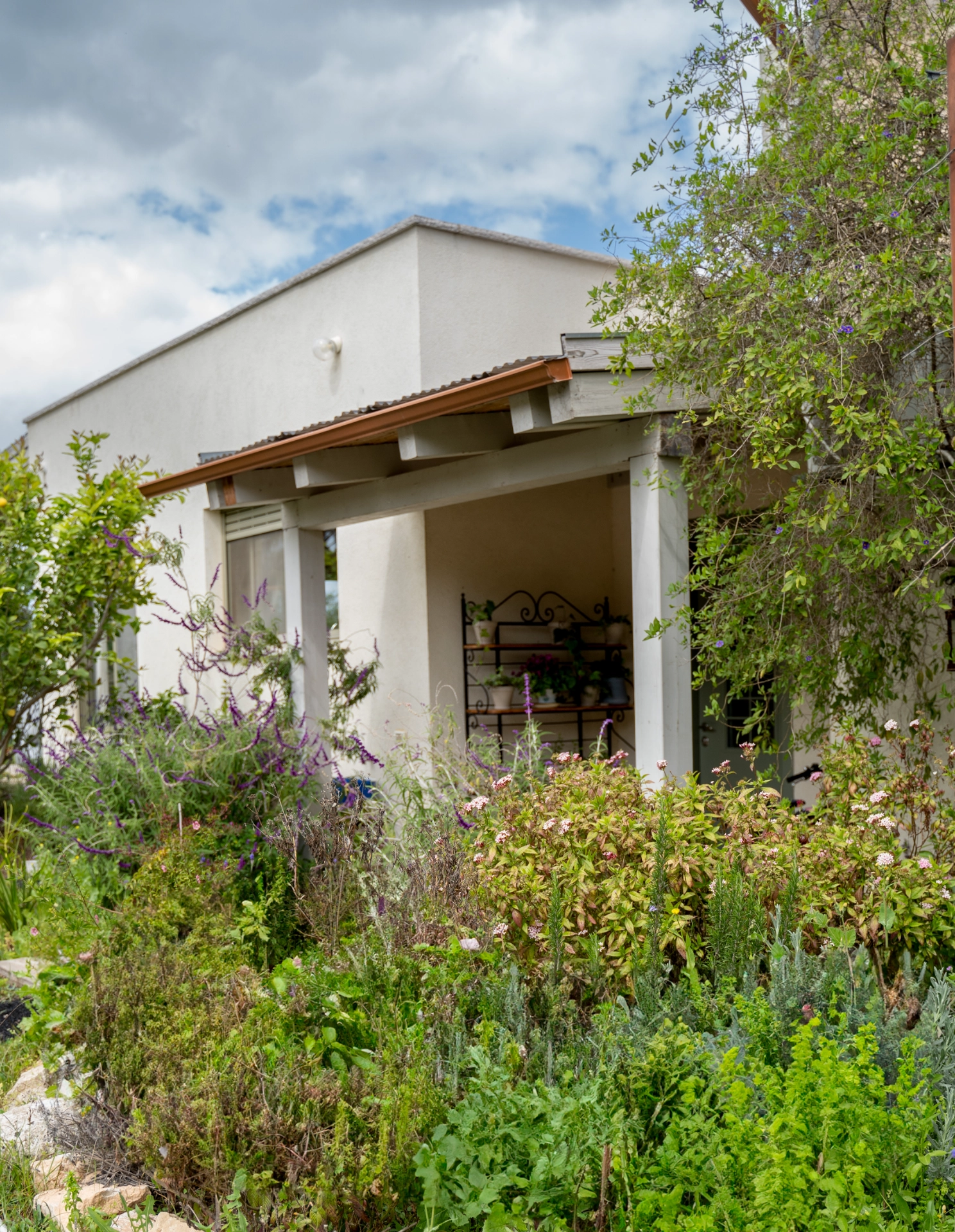 פינות מעוצבות שנמצאות בתוך חלל הבית ונוף משגע של מטע זיתים.